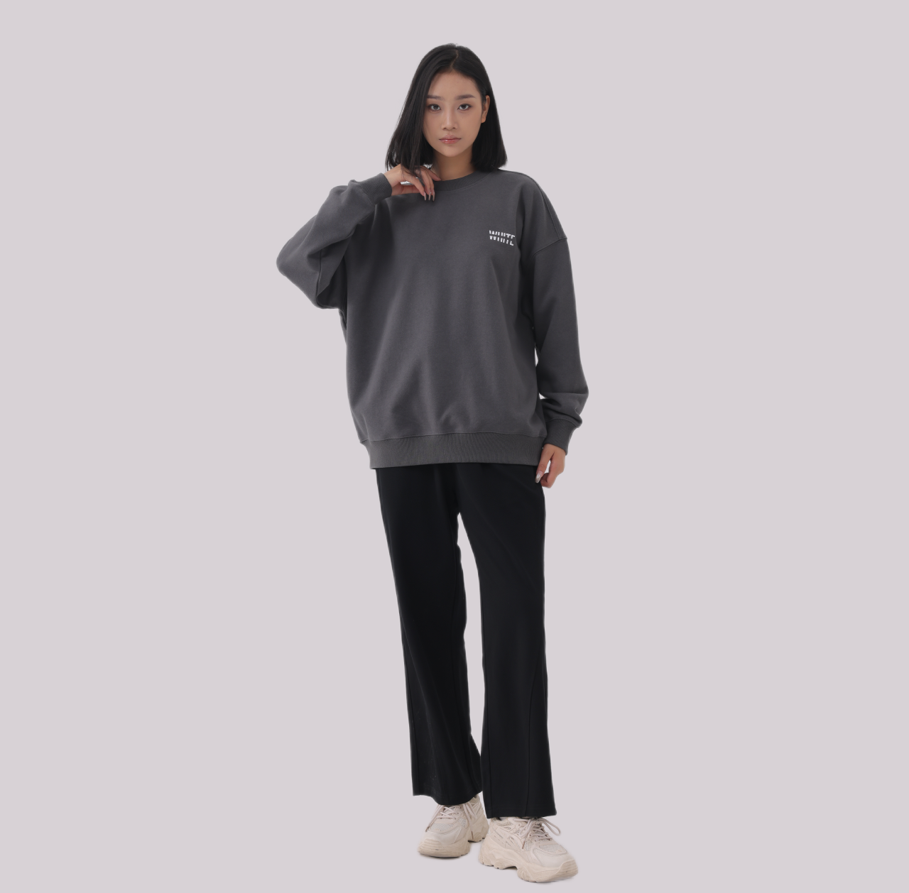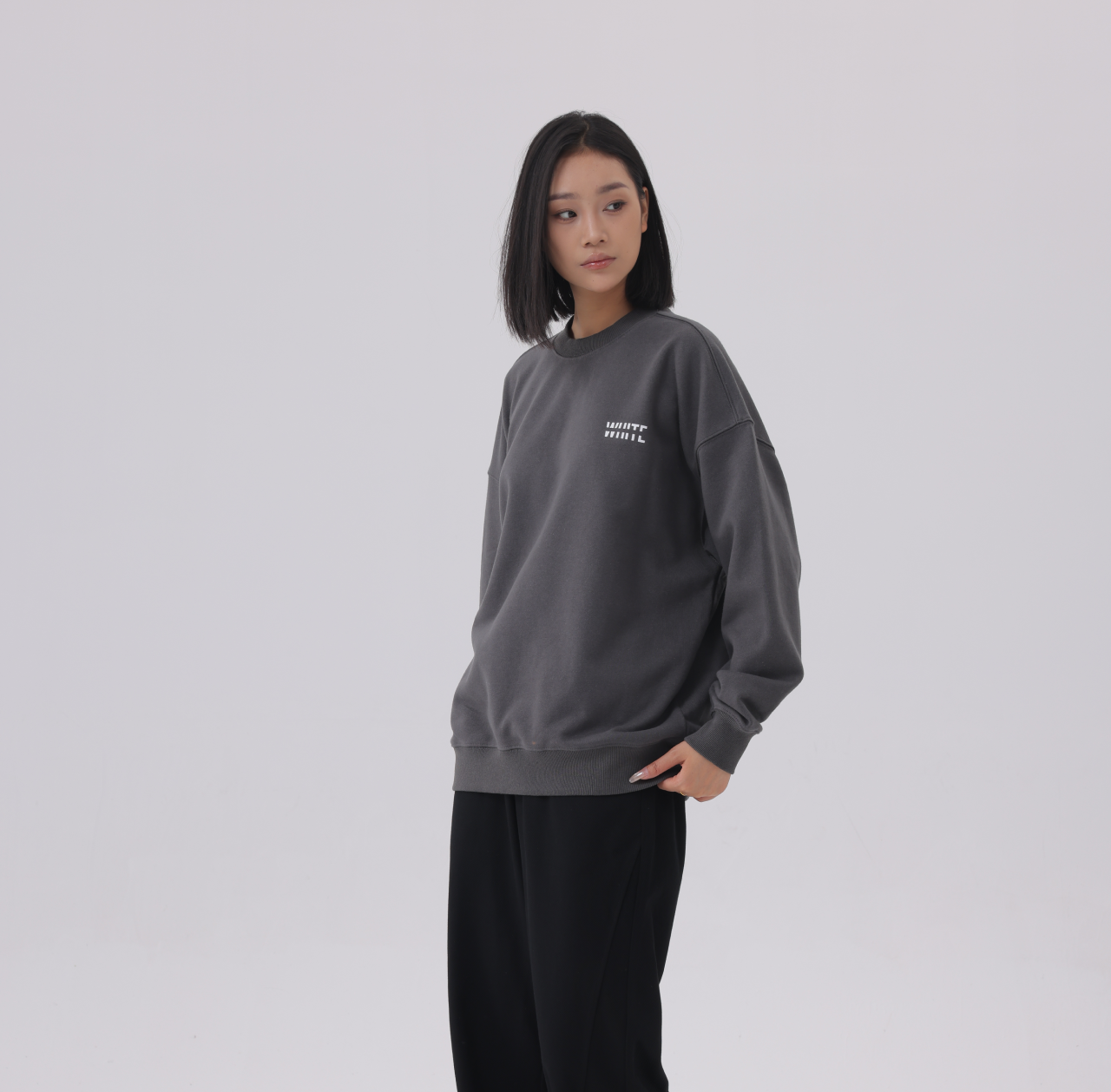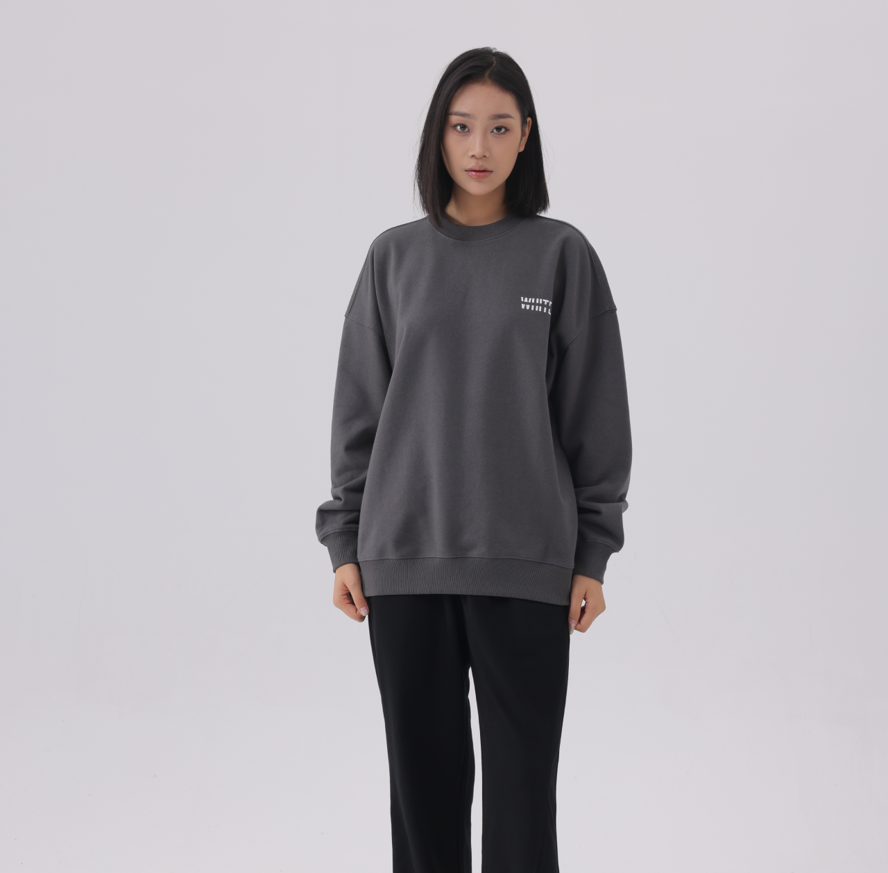 The WHITE Basics jumper. Defined by our signature silhouette, cotton blend intended to be worn in dropped shoulders style. This features our minimalist logo print inspired by a less is more smart casual aesthetic on the left chest.