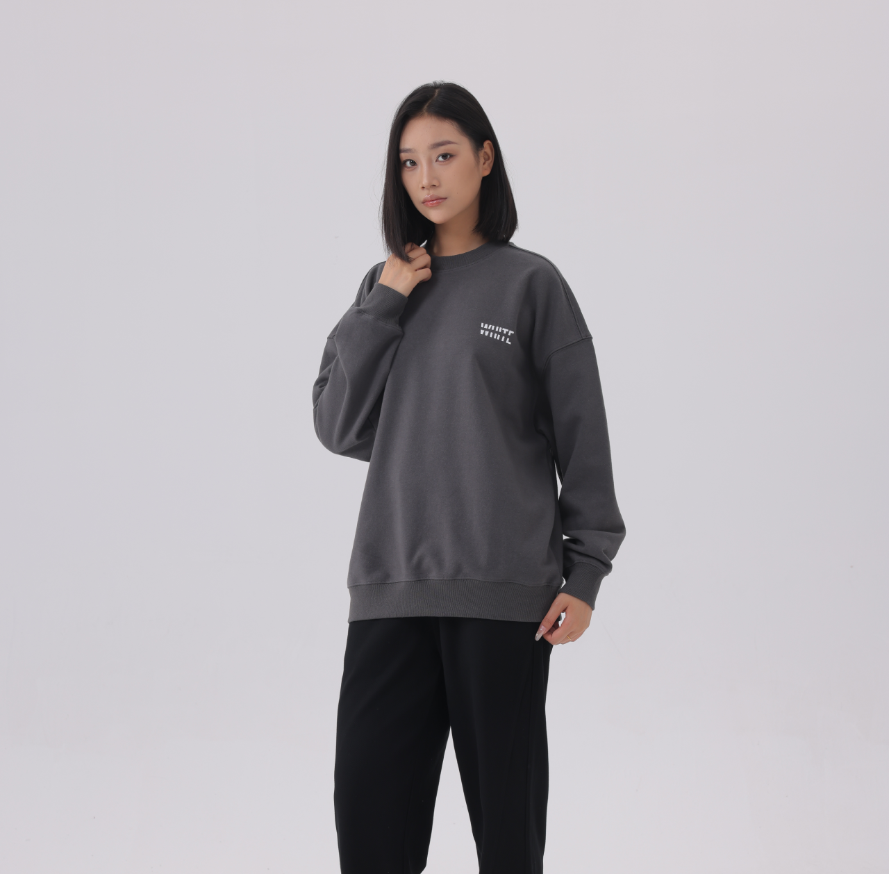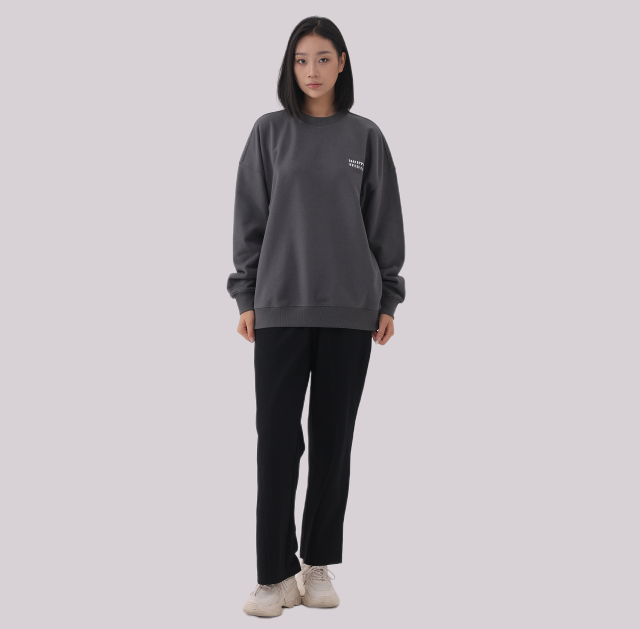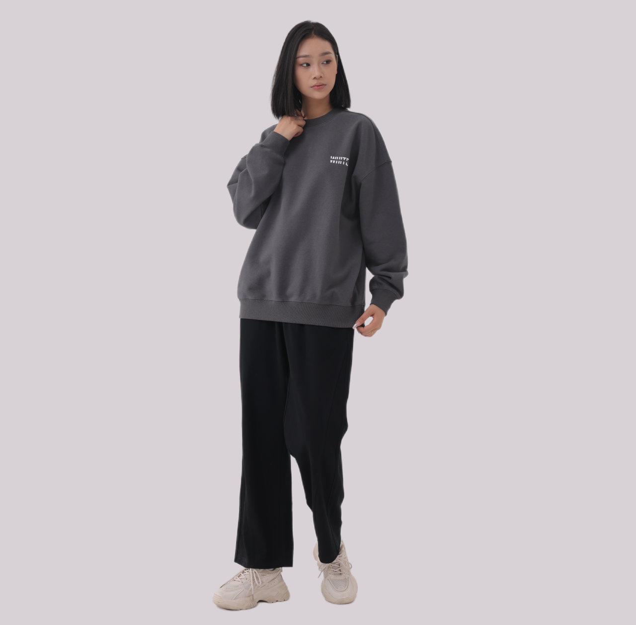 The WHITE Basics jumper. Defined by our signature silhouette, cotton blend intended to be worn in dropped shoulders style. This features our minimalist logo print inspired by a less is more smart casual aesthetic on the left chest.